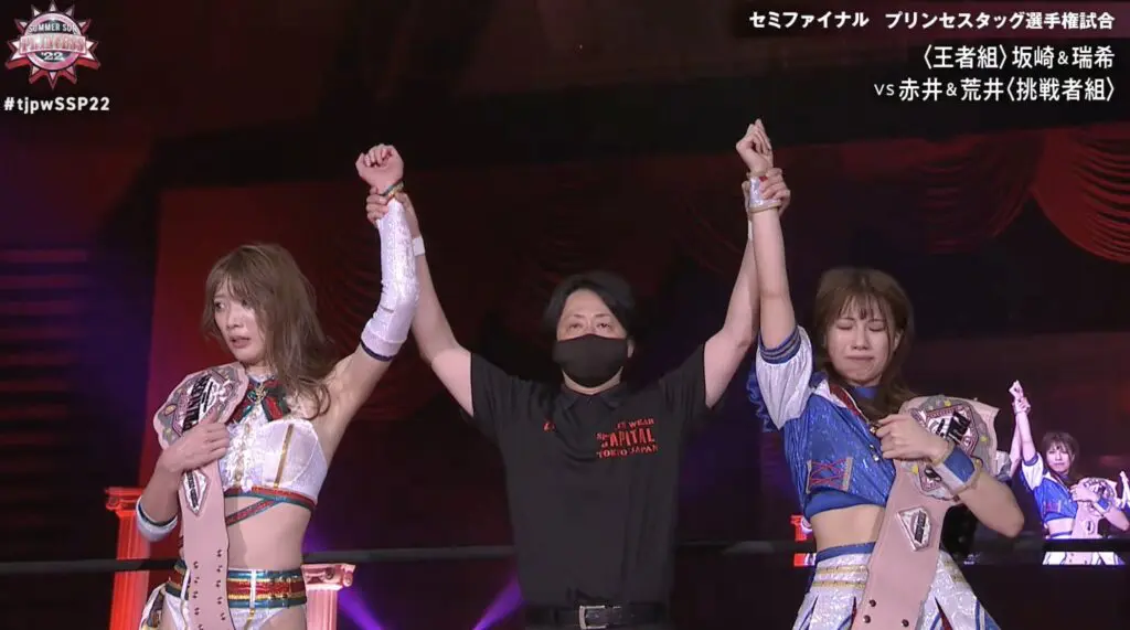 Throughout 2022 and 2023 for TJPW, Saki Akai teamed with TJPW young star Yuki Arai and they were known as Reiwa AA Cannon. They held the TJPW Princess Tag Team Championship for nearly 180 days.