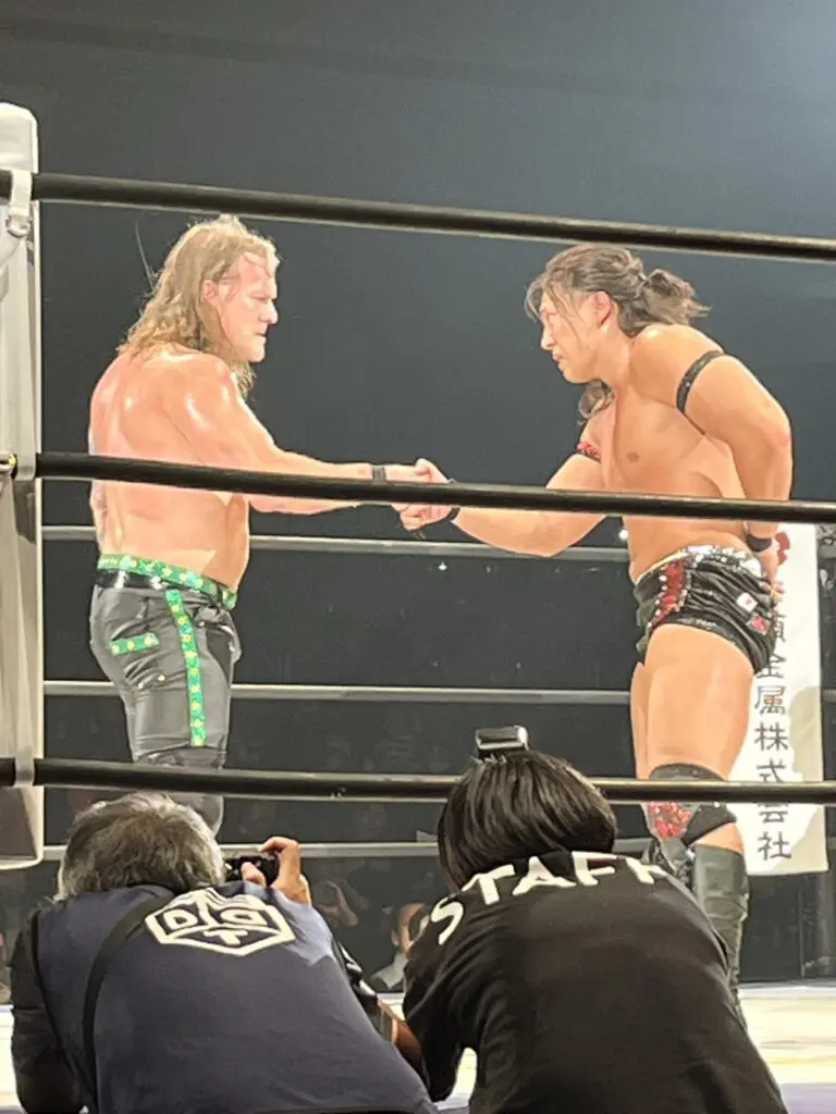After a terrific match in front of a vocal crowd, Chris Jericho forced KONOSUKE TAKESHITA to tap out to his Walls Of Jericho finisher. The two shook hands after the match but TAKESHITA said it’s not over between them.