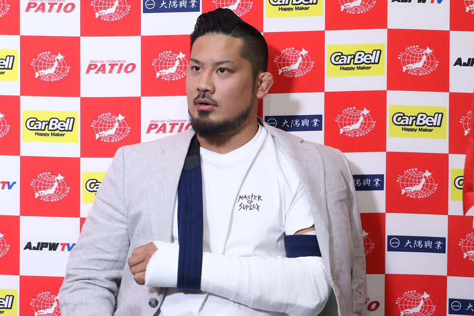 On May 7th, Ashino fractured his left ulnar during the AJPW Champion Carnival 2023 Finals match against T-Hawk. Shotaro Ashino was victorious and became the winner of the AJPW Champion Carnival 2023. He had earned the opportunity to face then Triple Crown Champion Yuji Nagata but had to pull out of the championship match due to the injury.