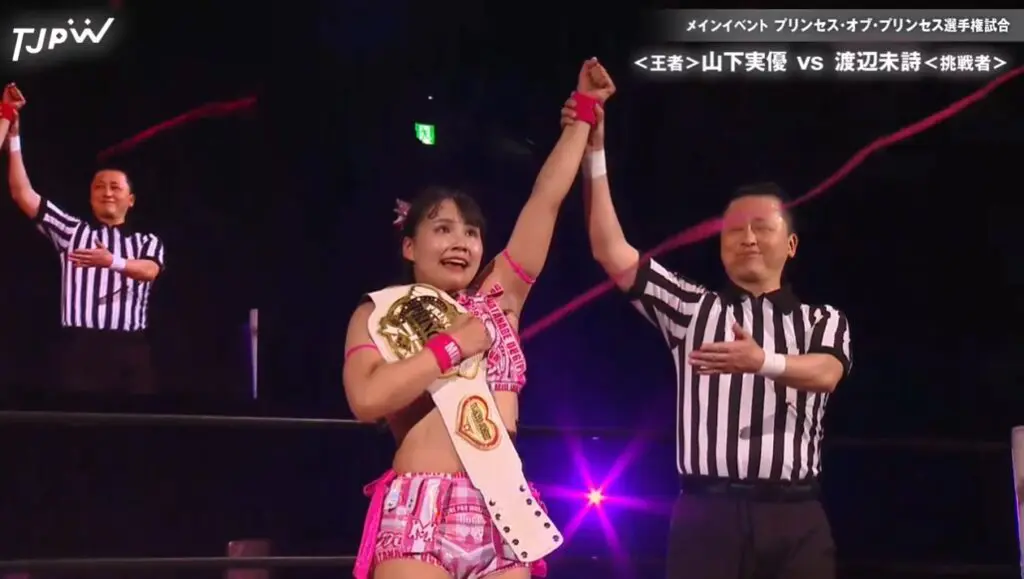 On March 31st, Tokyo Joshi Pro-Wrestling superstar Miu Watanabe won the Princess of Princess Title for the first time in her career when she defeated Miyu Yamashita at GRAND PRINCESS ’24. There were over 2300 fans in attendance at the Ryogoku Kokugikan in Tokyo to witness Watanabe win the top championship in TJPW.