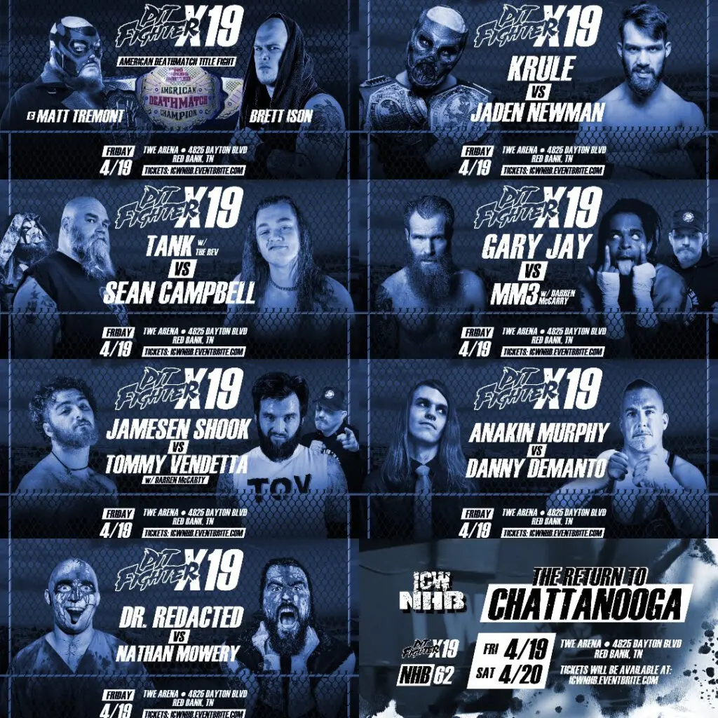 ICW No Holds Barred held their NHB Pit Fighter X19 event on Friday night April 19th, 2024 from the TWE Arena in Red Bank, Tennessee and aired live on IWTV.