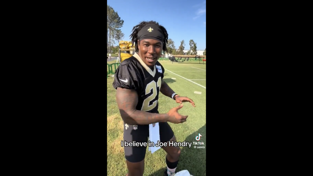 Earlier today at practice, Williams can be heard singing…”I Believe”… He stopped to talk to the person filming live on the official Saints Tik Tok app.