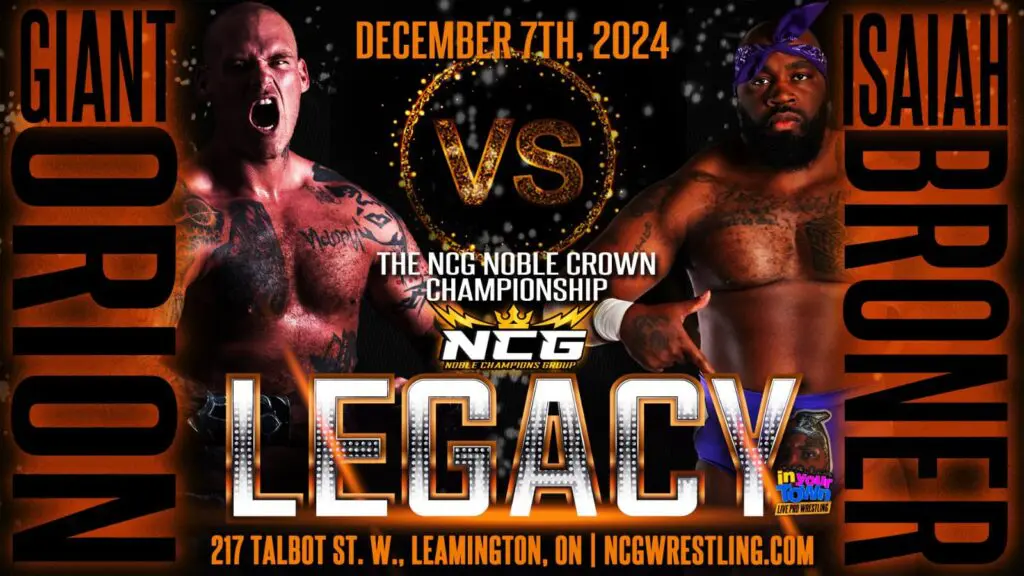 Also at NCG Legacy, the current NCG World Champion Stone Rockwell will defend his title against The Soultaker and Giant Orion puts his Noble Crown on the line against Isaiah Broner.