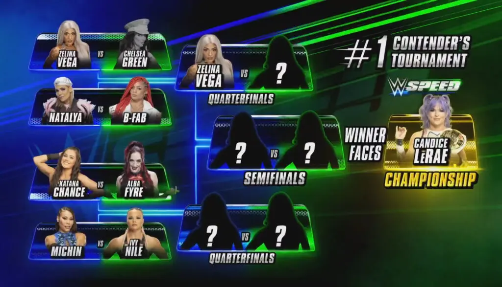 A new WWE Speed Tournament to crown the next number one contender for Candice LeRae’s Speed Championship is now under way. The first tournament match kicked off today on WWE’s X account at 12 Noon ET. The opening tournament match was Zelina Vega vs. Chelsea Green.
