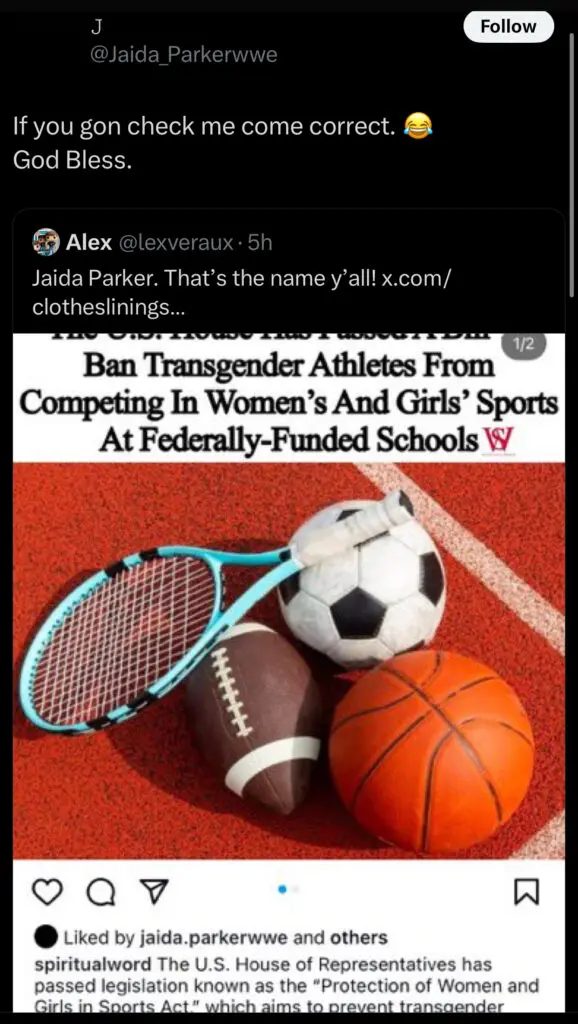 Today, WWE NXT superstar Jaida Parker is under fire after fans found an Instagram post where she liked a photo about transgender women not being allowed in sports. From there, many fans jumped onto Jaida immediately and she responded to basically double-down.