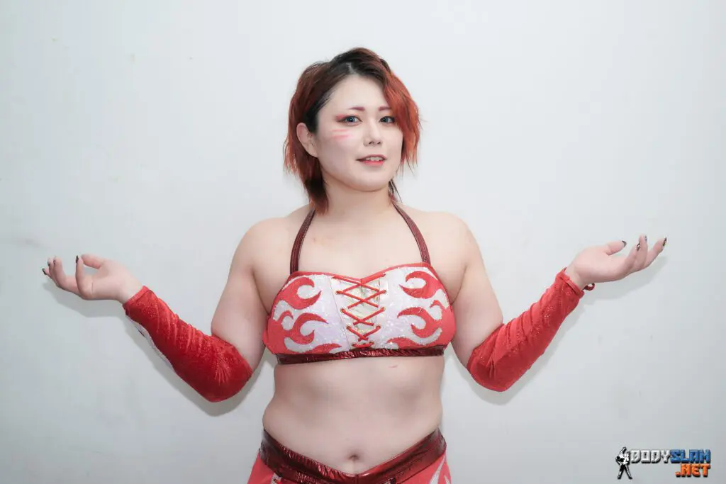 A – I wanted to hold onto that belt for longer, and during the summer in Hokkaido, Saya Kamitani betrayed me and went to H.A.T.E. And that same Saya Kamitani now holds that Red Belt, so there’s a lot of resentment in me. I believe I will be the one to strip Saya Kamitani of the Red Belt, along with winning the IWGP and Strong belts to become a triple crown champion and pave the way through my career.