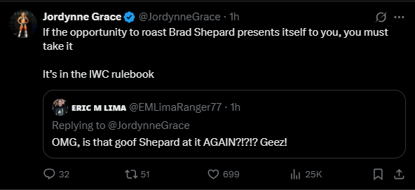 Tonight was just the latest example of that. And chances are, Shepard will take this as an opportunity to say that he “got to” Jordynne Grace. Or that he’s “inside her head.” What Shepard knows, but won’t actually say out loud, is that it takes 10 seconds to demonstrate this dude’s small-dick energy. A quick tweet will send him back into his goblin hole until the next opportunity to be a racist douche presents itself. Shepard won’t do anything about it. He won’t fight anybody. He won’t even meet somebody face to face to hash out any problems he may have with them. He won’t stand on business. He won’t do a thing, because Brad Shepard is a coward. He is a weak, untalented, BORING coward. And he will continue to be the punchline of the internet every single time he fires off a tweet, and then goes back into hiding. He’s afraid of confrontation. He’s afraid of self reflection. He’s afraid to fight.