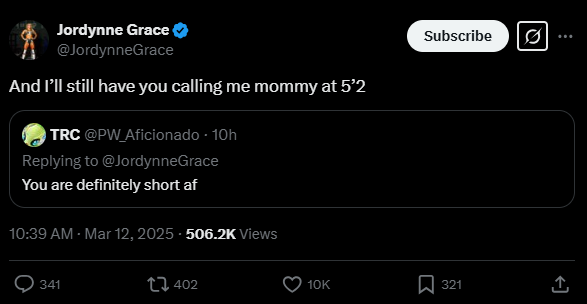 Grace, responding to another internet troll who called her “short af,” replied that said person still calls her mommy.