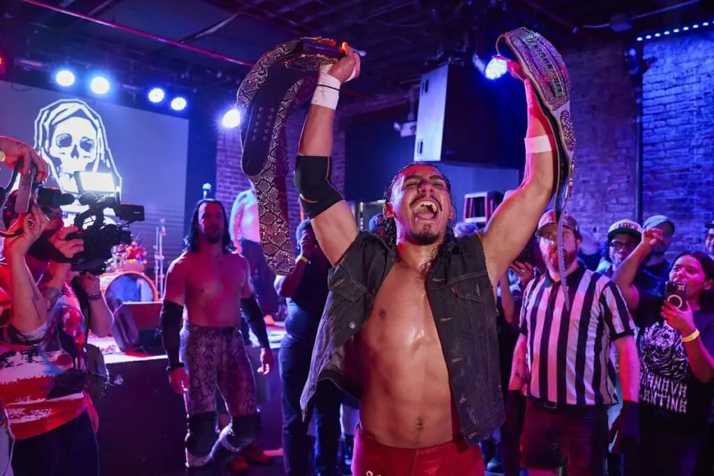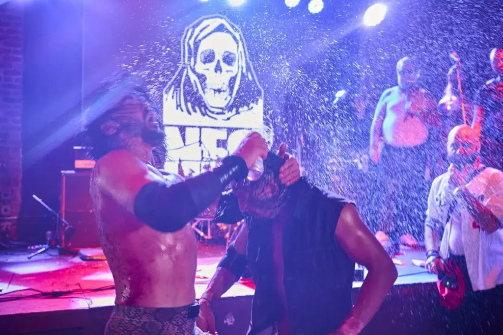 “Honestly, if you go to a lot of indie wrestling shows, it’s a bunch of guys, there’s no hot girls. And people, they go, sit, cheer, clap and then they go back into their mom’s basement, you know? That’s not what we wanted. We wanted nightlife. We wanted this to be the place to be. And so borrowing from, you know, WWF’s original plan, which was when they brought in rock and roll to wrestling. And we leaned really heavy into music, really heavy into a nightlife type of vibe. And I just find that with the no ring stuff, it immediately takes the argument out [wrestling being fake] of people’s minds. It takes that wall down, that defense that people have, because if the fight is happening this close to you, it’s a lot harder to say, ‘oh, that shit’s fake. This is boring.’ And so I always refer to the movie Roadhouse, the original one with Patrick Swayze and the new one with Jake Gyllenhaal and Conor McGregor. This is you are in a live action Roadhouse bar fight type of environment.”