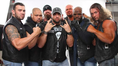 From 2012-2013 Aces & Eights, a group of masked men dressed in biker gear made their presence known when they attacked ‘The Icon’ Sting during a segment on Impact; For 13 months these masked assailants would leave cryptic messages and attack folks at random (in some cases with ballpein hammers).