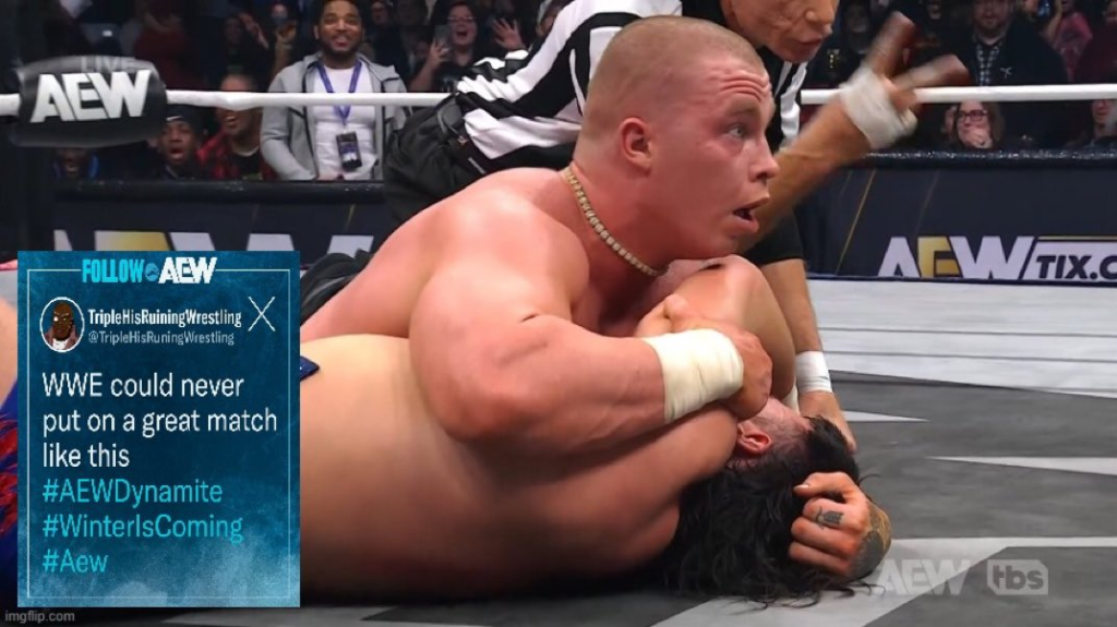 They’ve since rebounded from that. But the mere thought of even being tribalistic will continue to plague them. For example, recently, someone photoshopped AEW’s usual televised showcase of pro-AEW tweets to make it sound like an anti-WWE post made it to air. Bad-faith actors swarmed on this like flies to a carcass, lashing against AEW and accusing them of tribalism. AEW didn’t even have to participate in tribalism actively; fanatics made it up and riled up a discussion full of nothingness at the end of it.